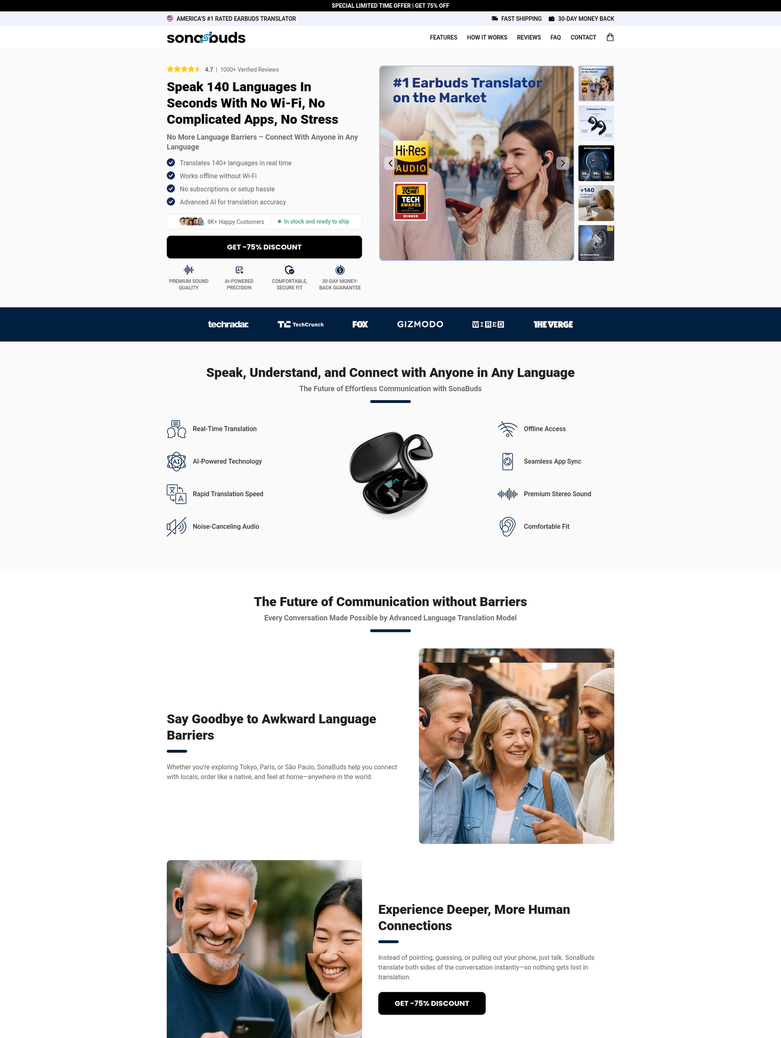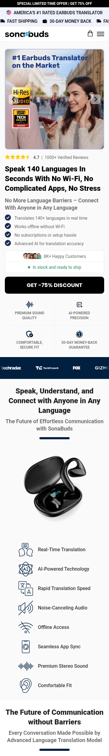 Welcome to the official SonaBuds purchase page. Secure the 2025 model for the lowest price guaranteed. This exclusive offer includes a massive 75% discount, reducing the price to just $59.90. This limited-time promotion is available for US customers seeking premium audio technology. Click to order and claim your savings of $446.95 before this unique sale ends.